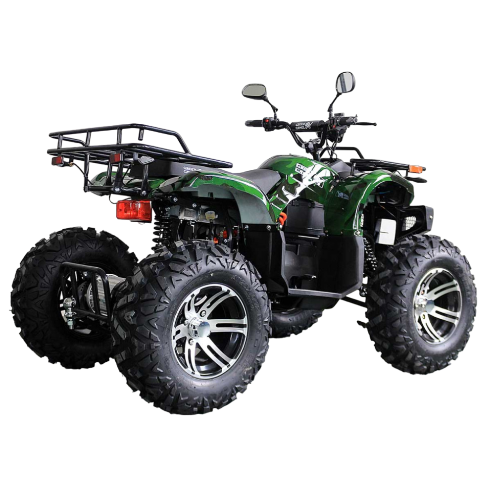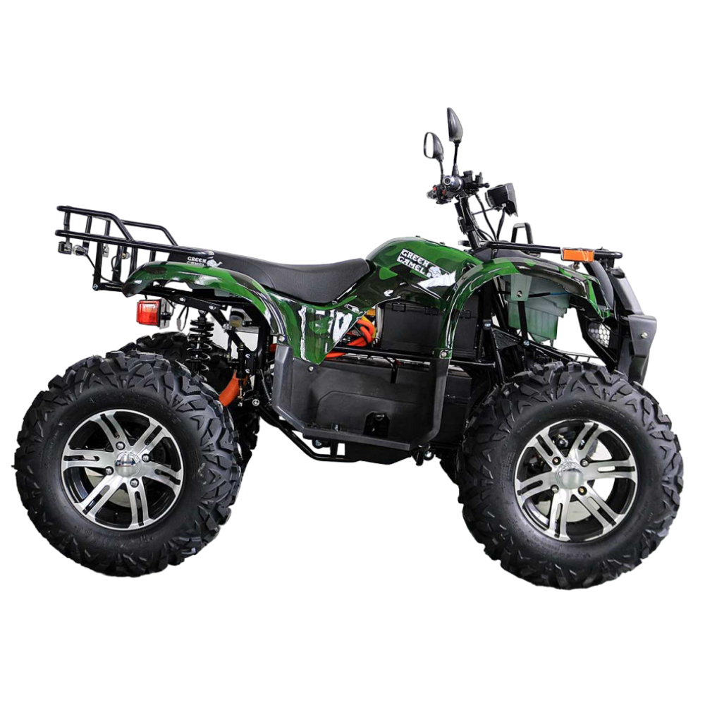 Электроквадроцикл достигает скорости до 50 км/ч. Батарея на 72V 3000W может проехать до 60 км на одном заряде. R12 alum дифференциал улучшает проходимость и стабильность на всех типах поверхностей. А зеленый цвет добавляет красоты и оригинальности.