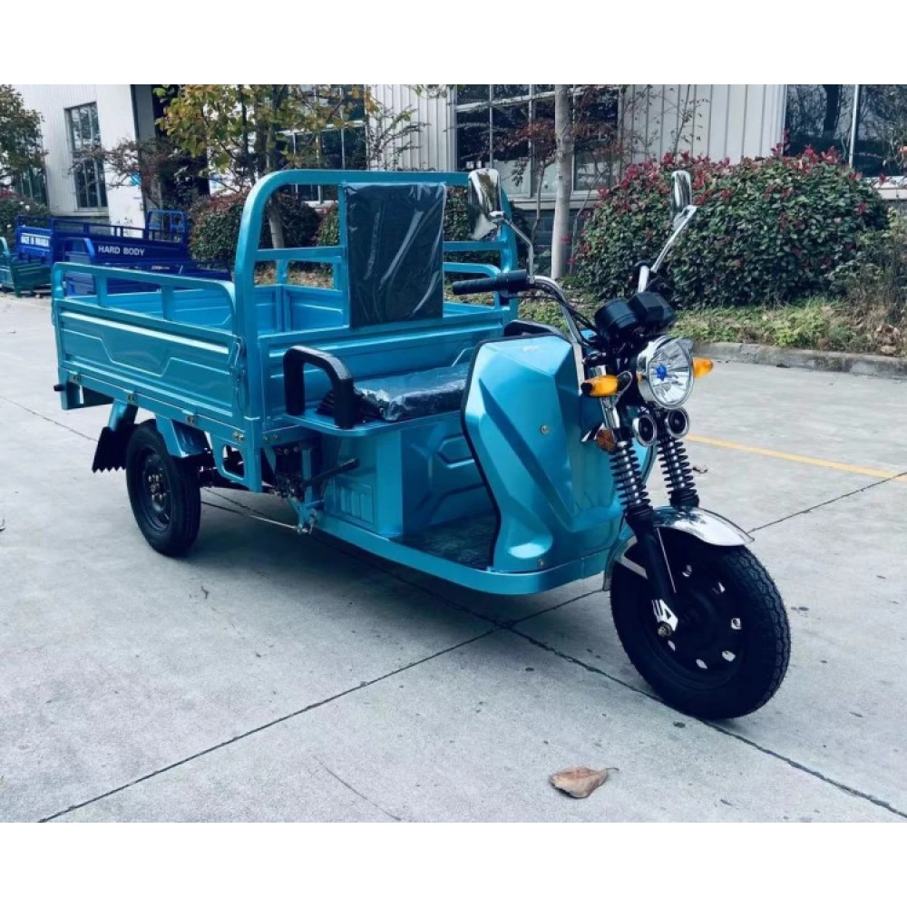 Техника изготовлена из высокопрочного материала, который в ходе эксплуатации не теряет своих характеристик. Производитель учел все пожелания и оснастил модель шасси с гидравлическими амортизаторами. Для безопасности движения у электротрицикла барабанные передние и задние тормоза. Транспорт имеет мотор мощностью 1000 Вт, что позволяет развивать скорость до 30 км/час. Количество циклов разрядки/зарядки составляет 700. Ресурса батареи хватает на 15 тыс.км. Это доступный вид транспортного средства с максимальной нагрузкой до 350 кг груза, не требует сложного обслуживания.