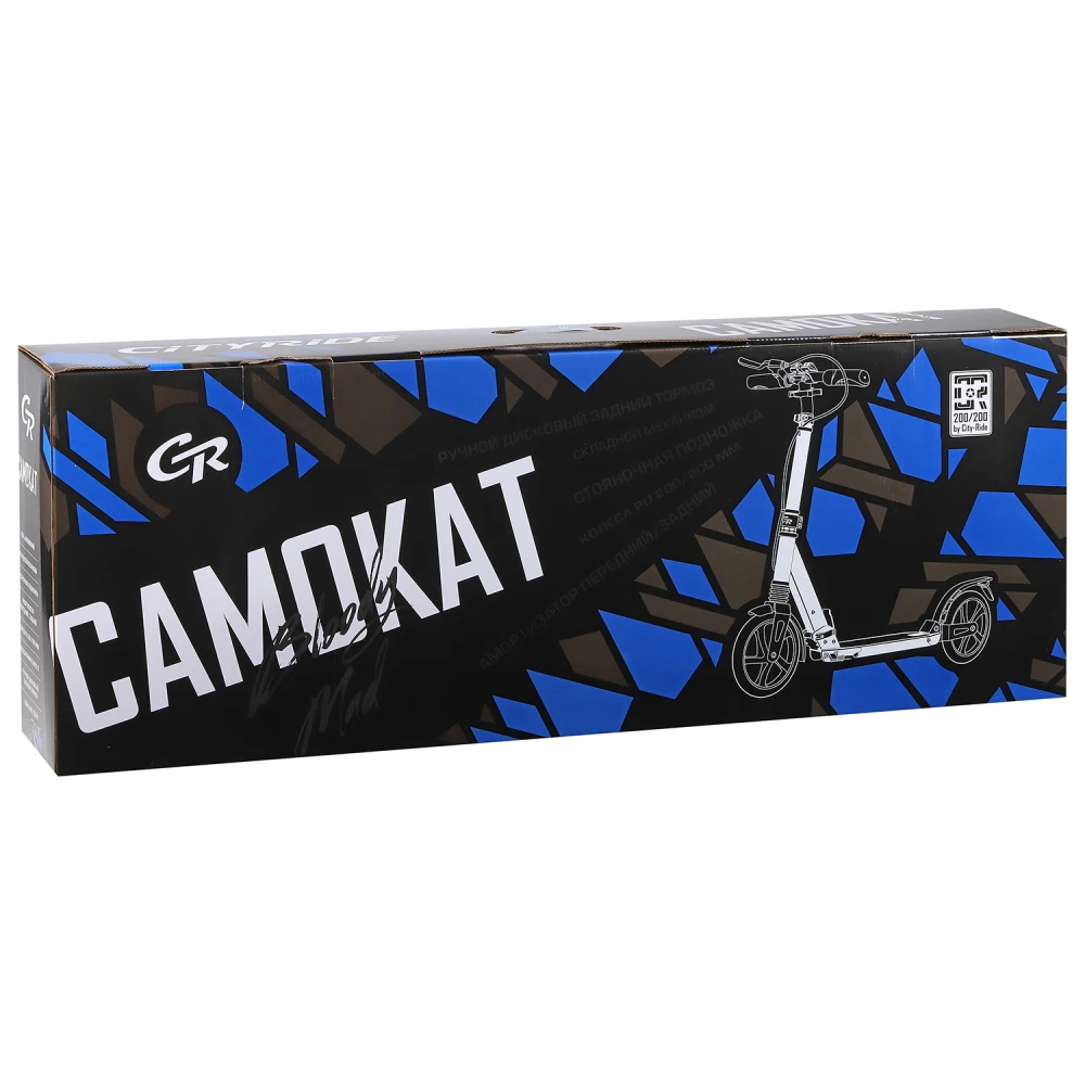 Платформа – широкая, покрыты брендовой среднезернистой шкуркой. Антискользящая. Ширина и длина деки - 465*135 мм соответственно. Рулевая стойка – послушная. Колесная часть размерами -200 мм, накатистая. Грипсы – прорезиненные, не провоцируют соскальзывание и запотевание рук.